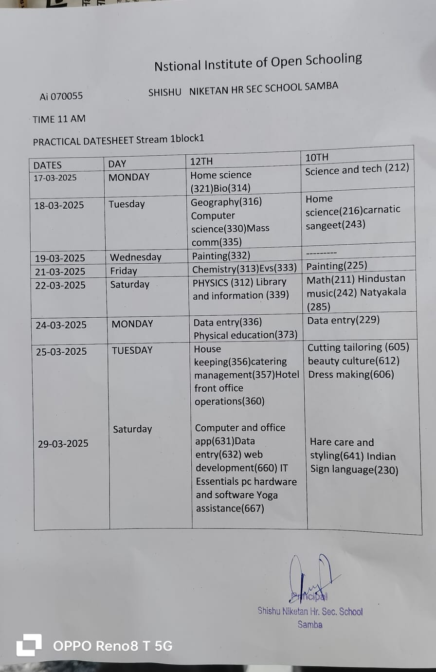 Hall Ticket for Secondary and Senior Secondary courses for Oct/Nov 2024 Public Exams JAMMU